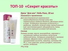 - Cream "Universal Nutrien Complex for the skin of the face." The cream actively saturates the cells with oxygen - thereby improving the tone of the face and restoring the structure of the skin.