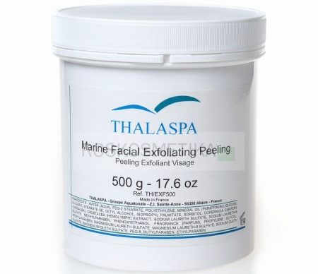 - Sea Exfoliating Facial Peeling 500 g (Thalaspa). The product has a soft creamy consistency with the addition of kelp grains and oyster shell extract. Peeling gently cleanses the epidermis from the dead layer and all kinds of contaminants. In addition, it fills the skin with marine minerals, improves blood flow in tissues, and increases the protective function of the skin. It is recommended to use the product no more than 2 times a week. You can buy it for 3886 rubles for 500 g.