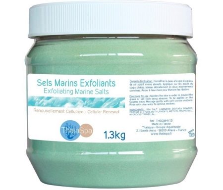 - Microkean Exfoliating Marine Salts Thalaspa. It has a targeted effect against cellulite, delicately cleanses the skin, removes its sagging and improves tone. It is used in combination with massage oil. Exfoliating dead cells, nourishes the skin with nutrients. Due to the high content of rosemary, it has an aromatherapy effect. The composition includes algae, rosemary essential oil, sea salt. You can buy a scrubber weighing 500 g for 2300 rubles.
