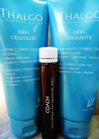 In this line, 2 funds are allocated. Cream against all types of cellulite Defi Cellulite saturates skin cells with oxygen, reduces the effect of the "orange peel", which contributes to weight loss. An increase in skin tone and elasticity is provided by extracts of sandalwood seeds and brown algae. The tool eliminates not only the signs of cellulite, but also edema, which is facilitated by red algae, which removes excess moisture.