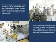 TianDe manufactures products in China, Russia and Belarus. In the production process, knowledge and experience are used, as well as the achievements of numerous research laboratories. The country of origin of the main raw materials for cosmetics is China. Everyone knows that the eastern countries have a huge supply of old recipes from medicinal plants, which are almost unique in their properties. That is why Chinese cosmetics are especially appreciated. TianDe manufactures all products using the latest technology.
