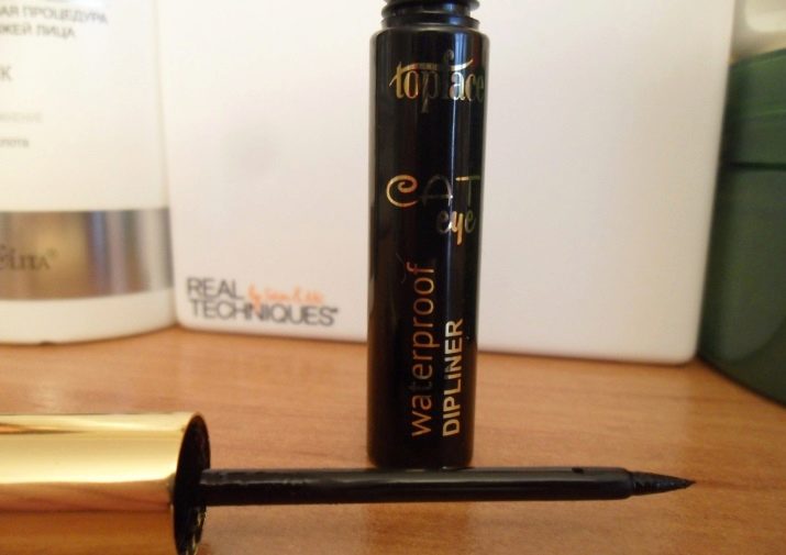 So, the eyeliner Topface Long lasting waterproof carbon-black dipliner is budget, but pretty good quality. She has a medium-long silicone brush. The only negative is that it does not dry out too quickly, so be careful when applying.