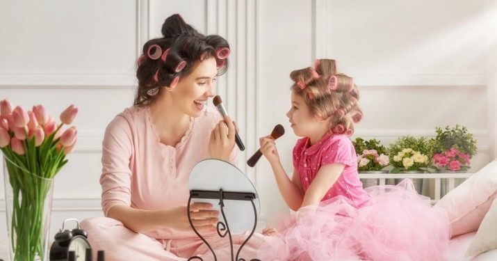 - Introducing the girl with makeup, you need to tell her in detail about all the components of the set, show what and what is used. It is necessary to familiarize the child not only with the application technique, but also with the makeup removal procedure, which must be done on the days when the cosmetics were used.