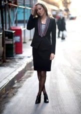 A suit with a skirt is no less popular than a trouser set. The skirt for a classic suit can be made in several styles. Among the most common: straight, pencil skirt, a-line, tulip, sun, pleated skirt, pleated, on yoke. The ideal length is around the knee, just above or below.