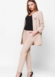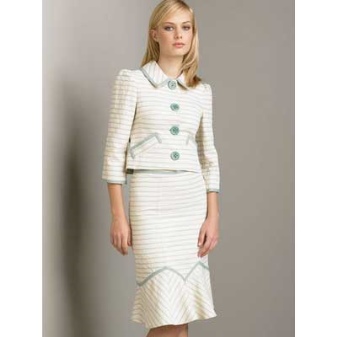 For fans of a purely feminine style, the option “skirt and jacket” remains a priority. So, the most popular today are options with a pencil skirt, the length of which barely reaches the knee. The jacket is most often chosen with or without an English collar.