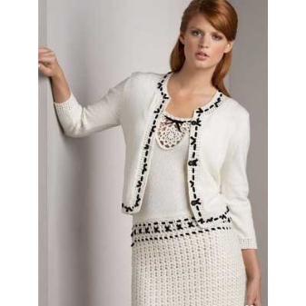 However, black and white are still considered to be classic - both individually and in pairs. The latter option allows you to achieve a bright contrast - a very important element in a suit from Chanel.