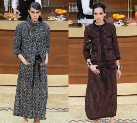 Of course, the models produced by the fashion house today meet all the requirements of the current style for a modern woman. But there are things that will always be in demand. This is a classic. Therefore, in many modern collections a lot of space is still given to tweaks from tweed - both trouser ones and ensembles with a skirt.