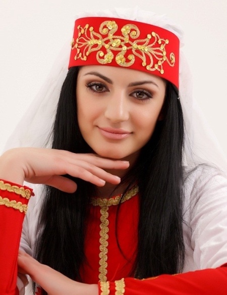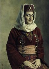 Young unmarried girls braided a huge number of thin braids, the number of which reached forty. To lengthen them and make the haircut richer, woolen threads were skillfully woven into pigtails to match the tone of hair, and were decorated with silver balls and tassels. An Eastern Armenian woman covered her head with colored capes, and in the western part of Armenia women preferred to wear a felt hat called “gtak”, which has the shape of a bucket.