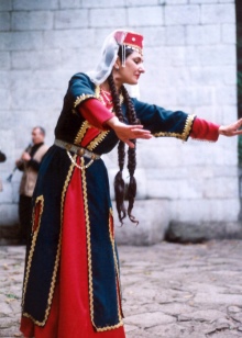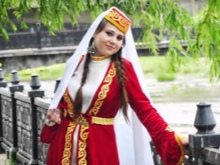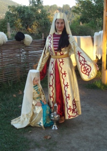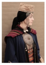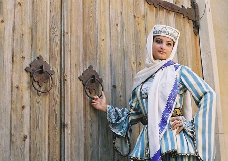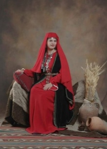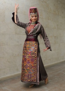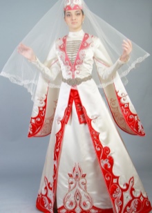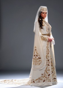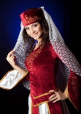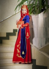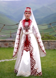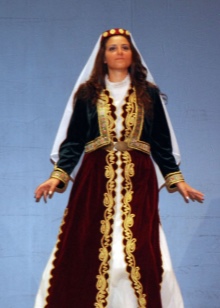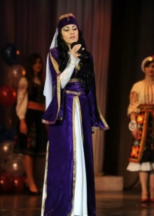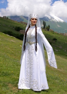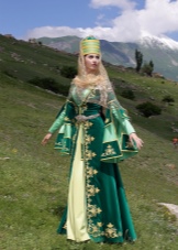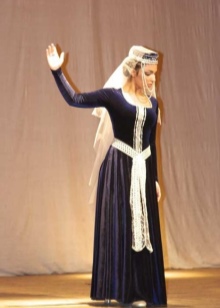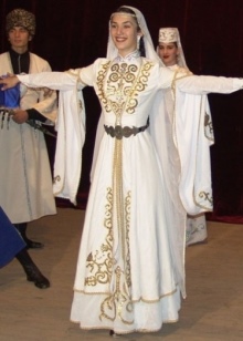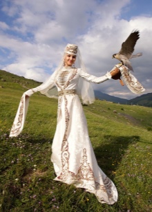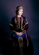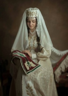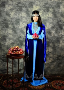 On festive days, a dress was put on the archalukh - mintan, which was almost no different from the archalukh, but was devoid of side cuts. A scarf made of beautiful fabrics or wool was tied to the belt, subsequently replaced with silver and gold belts, and the sleeves of the shirt were fastened with spherical buttons. A large veil made of fine wool was thrown over upon leaving the house. In older women, it was a blue hue.
