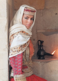 The basis of the women's wardrobe was: a spacious shirt - halvah with oblique mutual inserts, extensive straight sleeves, an oval neck opening and a hollow on the chest, scarlet from the residents of the east of the country, and light from the Armenians living in the west, as well as harem pants - stitched, sewn red cotton and gathered at the ankles. Ladies' archalukus dressed in bright colors, for example, blue, green or grape shade, was dressed on top, and there was a long neck on the chest.