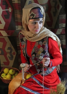 From time to time, hats were knitted of colored threads with a predominance of red, had a conical shape with a truncated top 15-20 cm high and were worn without a scarf. Pointed garments (like those of the nearby Kurds and Assyrians) were also worn in cone-shaped garments, felt hats, wrapping the top with a multi-colored or plain shawl embroidered with a fabulous geometric or floral ornament.