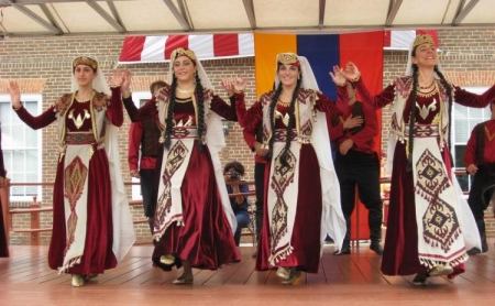 The wedding outfit among Armenians differed only in more expensive fabrics, as well as in other color schemes. An important element at the wedding were silver belts handed by the bride's parents during the wedding process.