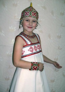 Children's Chuvash folk costumes were distinguished by their richness and luxury of embroidery. The clothes for the girls were quite simple and were decorated with braid or simple patterns that were sewn onto the hem. The head was covered with ordinary jewelry with beads and braid. Older girls wore beaded jewelry that was attached to the belt from the back.