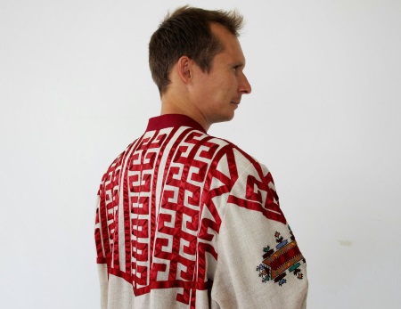 Initially, Chuvash shirts with a belt for men were made loose and long (to the knees). Men's clothes had various rich and festive embroideries, appliqués and silk patterns, while simple suits, not intended for the holidays, were quite concise and austere, and no patterns were applied to them.