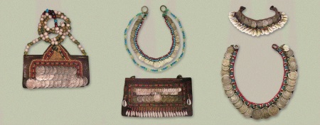 Jewelry sets with silver coins, details from beads and expensive stones make up: