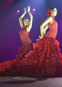 Romantic natures leave a lot of positive feedback on the national Spanish costume. Girls note that the clothes are perfect for classical Spanish dance and flamenco. She emphasizes every movement of the dancer and her proud posture. A long, magnificent, multi-layered skirt with ruffles does not constrain the steps and makes it easy to move in space.