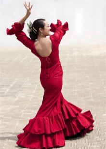 - The second option is a special baht. This is a plain skirt with a long train at the back. Her style depends on the style of the dance. Bata allows you to freely move around the stage, as it does not constrain fast movements. With its help it is easy to create a spectacular image of a dancing Spanish woman.