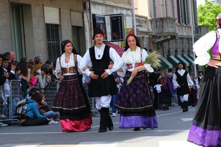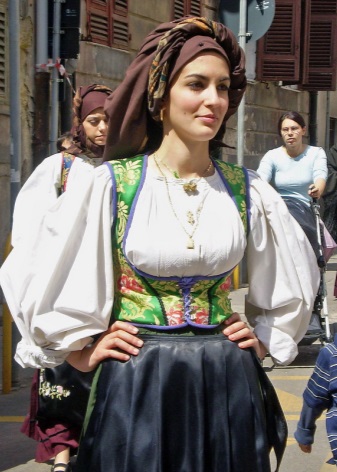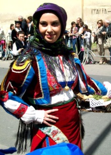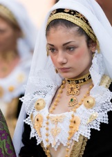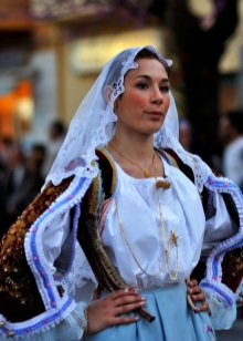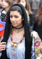 The outfits of women from the southern regions and Sardinia in particular are particularly diverse. Wealthy ladies wore bright dresses, the advantage was given to red. Be sure to complement your image with many rings on the fingers.