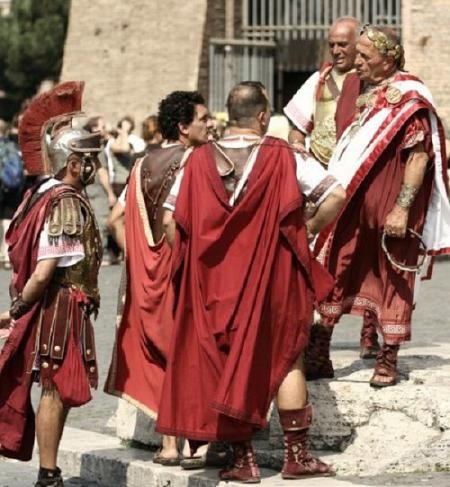 Free Romans could wear toga.Slaves and foreigners were deprived of this right. It was a piece of canvas that was thrown over his shoulder in the manner of a modern messenger bag. They put it on top of the tunic, and so that it lay in beautiful folds, various weights were sewn into the hem.