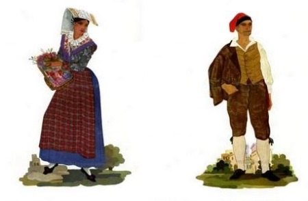 Men's national costume is much simpler than women's. It consists of trousers below the knee (knickers) and a white shirt. The image is complemented by a short jacket (jacca) or sleeveless jacket (panchotto). Berrita, a woolen headdress or Phrygian cap, covers the head.