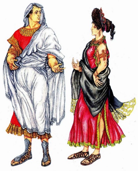 The main element of clothing for men and women was a tunic, it was worn by both rich Romans and their slaves. The male usually reached the knee, and the female - to the very heels, and could have sleeves. In the cold season, they warmed up, putting on several tunics on top of each other. Clothes were sewn from bleached fabric, only multi-colored strips served as distinctive elements.