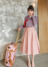 The main components of the costume for women are a rather loose and long skirt that has a smell called chima, as well as a jacket called chogori.