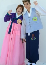 In addition to the bride at the wedding, mothers should have a hanbok of a certain color: the groom’s mother wears a blue suit, and the bride’s mother is pink in clothes. Marriage of a woman can be identified by the purple color of the ribbon on the collar. The mother of the boy stood out by the presence of a blue suit in the cuffs.