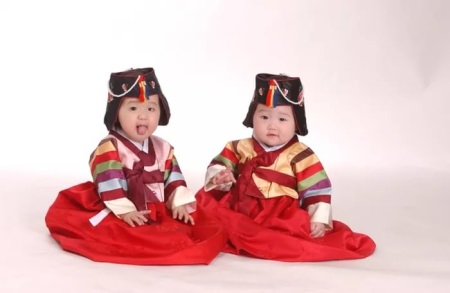 Adults put on for such occasions a traditional hanbok, holiday clothes for children - a multi-colored stripes jacket and trousers or skirt, depending on the gender of the child. On the first birthday of the child, relatives and friends come to wish the baby health and prosperity. For such an event, a special hanbok is put on the child.