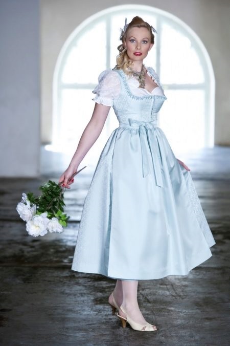 In the wardrobe of a German girl there was always an elegant dindril, necessary in the event of solemn events and festivities. It differed from the regular version with a wide sleeve and a brighter apron.