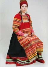 Despite the large differences in the regions and even in the provinces, one can distinguish the common characteristic features of national Russian clothing: layering, flared silhouette, bright colors, rich finishes.