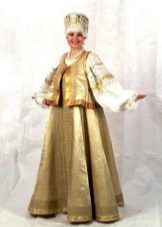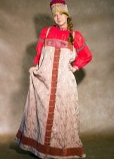 Sundresses were oar and deaf, had a trapezoidal style, sewn from one or more paintings. More simple sundresses are products on the straps, straight cut. The holidays were made of silk and brocade, and for daily affairs and life - cloth and chintz. Sometimes on top of a sundress they put on a murderer.
