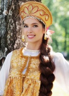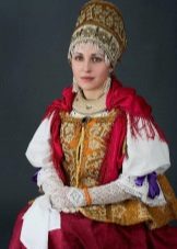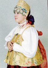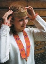 The traditional headdress that has come down to our times is the festive kokoshnik, however, besides him, part of the costume includes hoops, ribbons, bandages, scarves. Authentic outfit involves the mandatory use of jewelry, pearl necklaces, embroidered detachable collars. Among the shoes should be called ankle boots and long boots, bast shoes, felt boots for the winter.