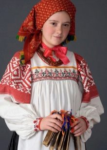 Costumes for girls and children very similar to adult models and include shirts, shirts, pants, sundresses, aprons, skirts, hats. Completely children's models can be sewn with short sleeves, for added convenience, and, in principle, have a general appearance of the dress, but with certain national elements. For teenage girls there is a greater variety of adult models, and not only sundresses and shirts, but also fur coats, ponev.