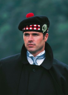 - Tam-o-Shenter is another national beret for the Scots. Like barmoral, it sometimes has a cockade in the form of a clan coat of arms in the center and a feather on its left. It differs from the previous headdress only in the absence of ribbons.