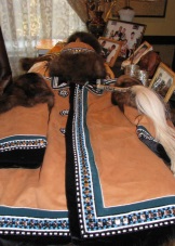 - outerwear - fur, suede with skillful addition of pieces of silk or fur national ornaments.