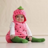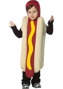 A curious option would be a costume that imitates a product. The kid in the outfit of a mushroom or berry, a funny watermelon or strawberry will look funny. Parents with a sense of humor can dress a child in a hamburger or hot dog costume.