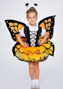 - Attributes This is not a complete costume, but rather a hint of it. Say, if the child is in the image of Harry Potter, you can buy a mantle and a magic wand, and trousers and a white shirt will harmoniously complement the image itself. The same applies to the image for a girl, for example, a butterfly. In the store you can buy beautiful shiny wings that are attached to any elegant dress. The addition will be the rim with antennae horns, and the outfit is ready! It also includes all kinds of weapons - sabers for pirates, shields and swords for brave knights, pistols for police officers.