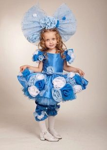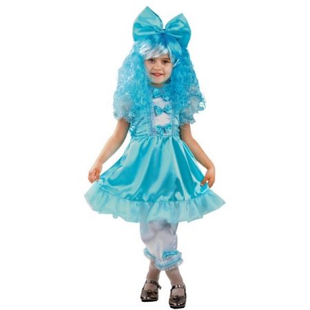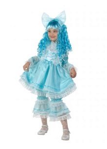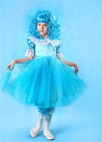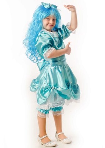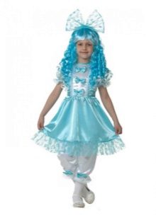 - Little Malvina will surely attract everyone's attention at the New Year's festival. A blue satin dress, complemented by snow-white trousers - knickers, will perfectly match with a shock of blue curls.