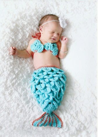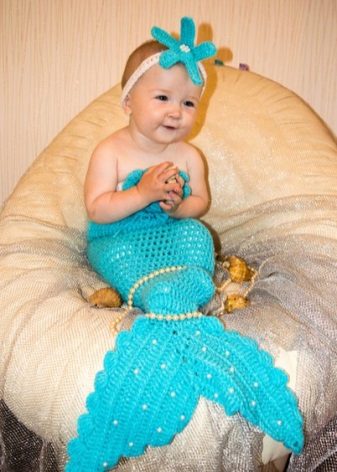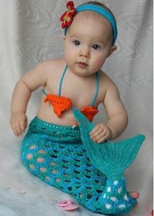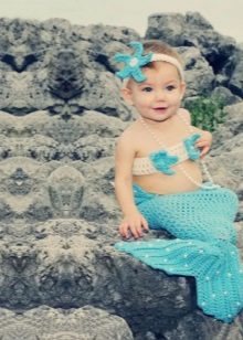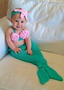 Girls who still do not know how to move independently can be dressed up in mermaid costume thus, the fish tail will not impede the baby’s movement. A wig with red hair and a purple top in the shape of shells will help create an image in the style of a Disney heroine.