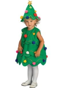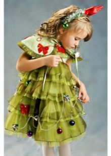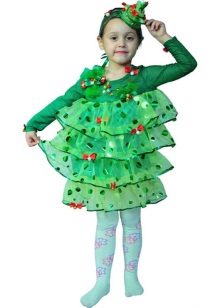 And, of course, the girl will be delighted with the dress of an elegant beauty with lush green branches. Therefore, you can safely acquire Christmas tree costume for your daughter. Usually, such an outfit is presented in the form of a lush multilayer dress of green color, decorated with geometric figures of different colors, as well as a pointed headdress.