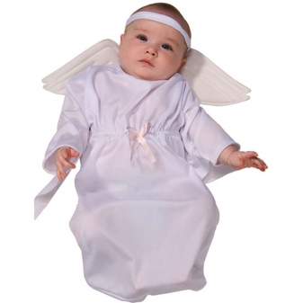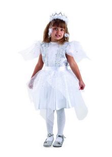 Baby can also be dressed up in angel costume with a snow-white dress and delicate wings. You can use purchased ones or build them yourself using thin lace or any white mesh fabric, wire, swan fluff or boa.
