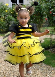 Girls of this age can also dress up in animalslike babies. A squirrel costume with a fluffy tail and cunning eyes, mice with large round ears, a yellowish chicken or a hard-working bee with a sharp sting will look great.
