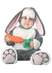 For the smallest girls, it’s quite suitable costume - a bunny jumpsuit. Big ears, pretty heels on the legs, soft belly - all that is needed for the baby to have fun, and most importantly, is warm and comfortable. Color options may be different. A bunny with a gray or white skin, or a fabulous kid in a pink suit.