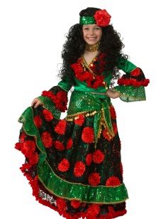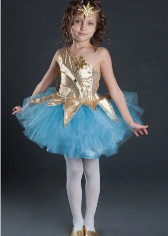 Will look great star costume. A magnificent golden dress with large rhinestones will not leave anyone indifferent. The dress can have a silver color and absolutely must be complemented by beautiful shoes of the corresponding shade.