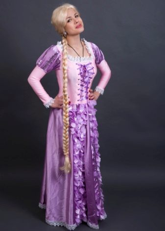 Absolutely every girl knows firsthand the fairy-tale heroine Rapunzel, so we advise all long-haired blondes to choose her outfit. The color and style of the dress, as well as other small details can be seen in the cartoon of the same name.