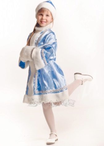 Another great option would be costume of the pink-cheeked granddaughter of Santa Claus - the snow maiden. The outfit in white-blue shades and the decor in the form of silver sequins will definitely be noticed and impress others. You can buy a standard "fur coat" of a snow maiden or a knitted model that can be used in the winter separately from the rest of the costume.