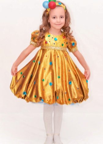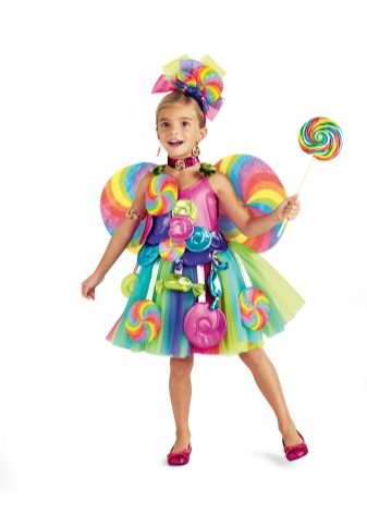 A candy suit, in a beautiful golden wrapper, is quite suitable. Little sweet tooth will be delighted with this outfit.