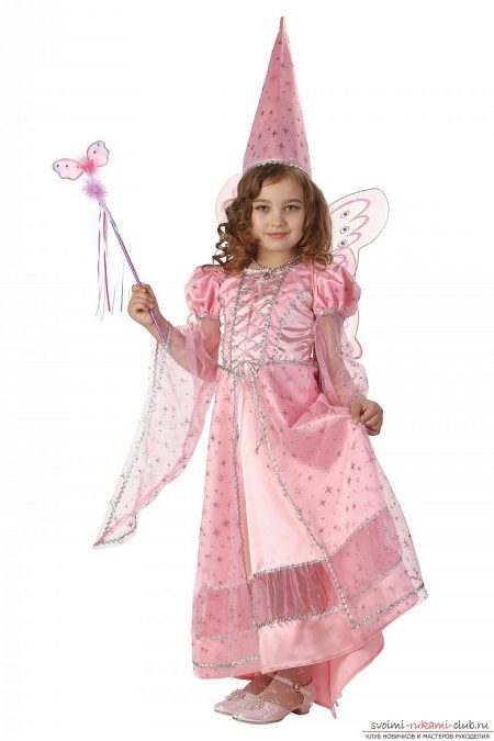 - A kind fairy in a beautiful dress with a chiffon wrap will look just great! A light pink shade is the most favorite among girls and will undoubtedly delight each of them.
