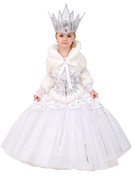 - The snow-white costume of the Snow Queen looks simply magnificent, therefore it will definitely make a splash, and the silver crown and magnificent style of the dress will delight any girl.