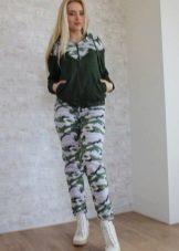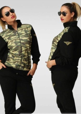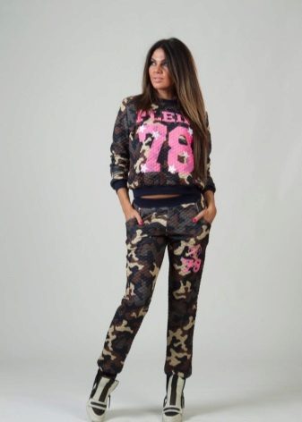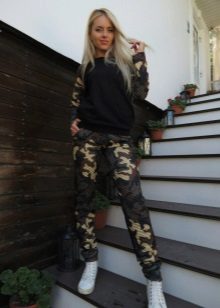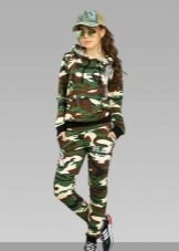The camouflage suit gravitates, of course, to sports style. Most young people lead an active lifestyle and need appropriate clothing. The military tracksuit is convenient because it does not constrain movements, and is ideal for training and dancing. It is easy to do tricks, jumps and hone skills in figure skating.
